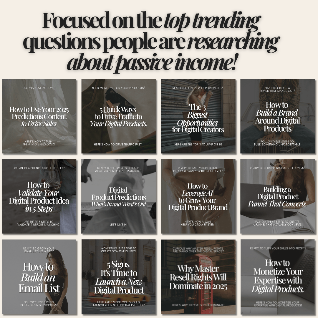 - 📚 40 High-Engagement Carousels (283 Individual Posts!) — Pre-built content that addresses top-trending passive income topics.