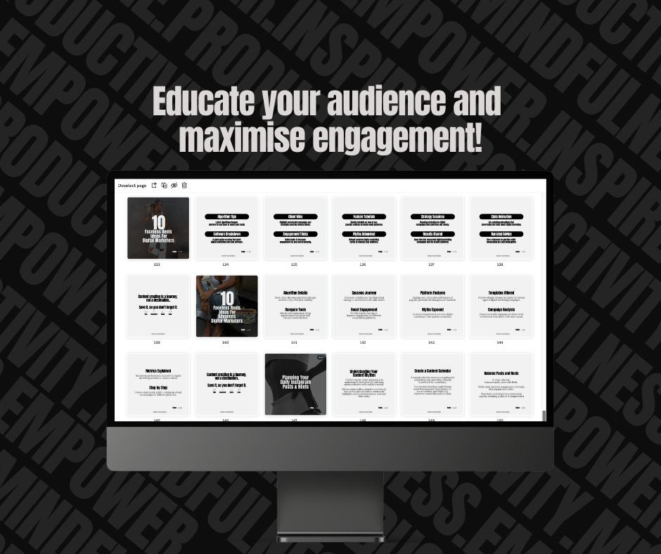 From hooks and content ideas to faceless reels and ChatGPT prompts, this bundle makes content creation effortless. Each carousel is professionally designed to deliver high-value, easy-to-digest marketing insights that keep your followers coming back for more.