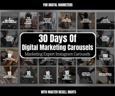Position yourself as a marketing expert and skyrocket your brand authority with the 30 Days of Digital Marketing Carousels. Packed with 30 done-for-you carousels (228 individual posts!), this collection gives you everything you need to educate your audience, boost engagement, and showcase your expertise on social media.
