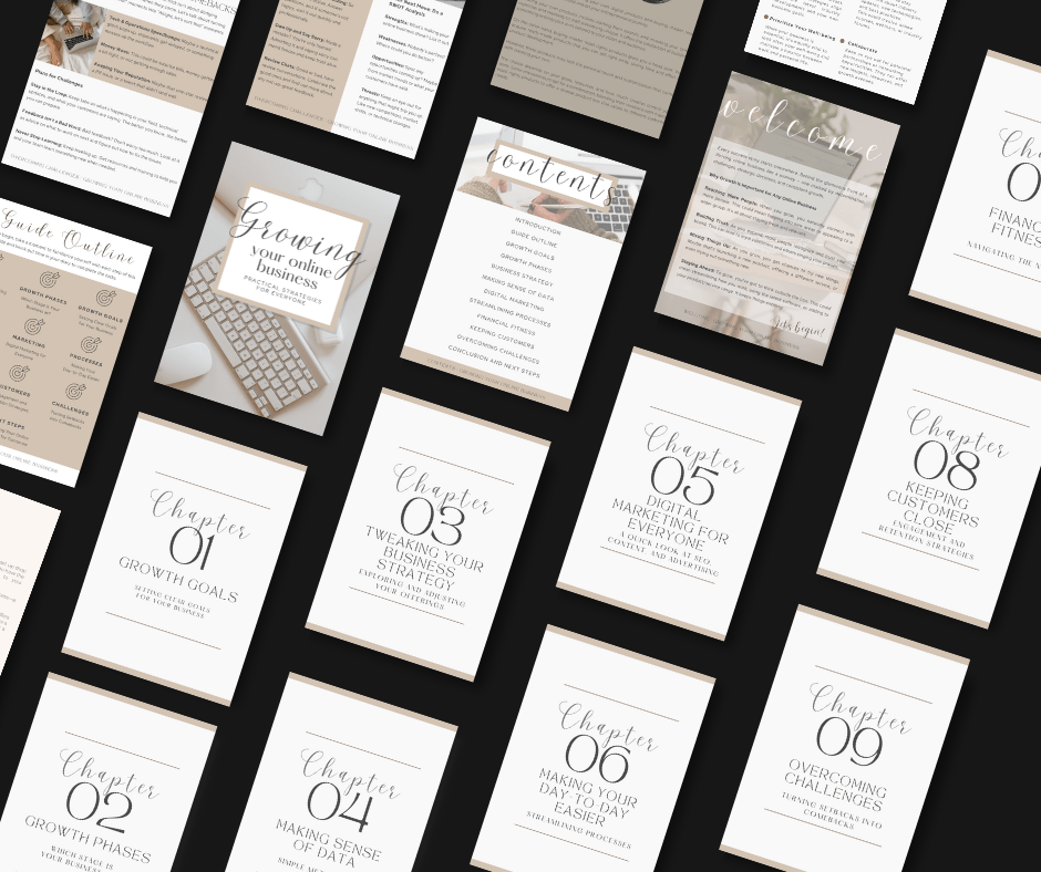 Ready to take your online business to the next level? The Growing Your Online Business eBook & Workbook is your step-by-step guide to scaling, optimizing, and streamlining your digital business. Whether you're just starting out or looking to refine your current strategy, this jam-packed 44-page guide will help you navigate every phase of business growth.