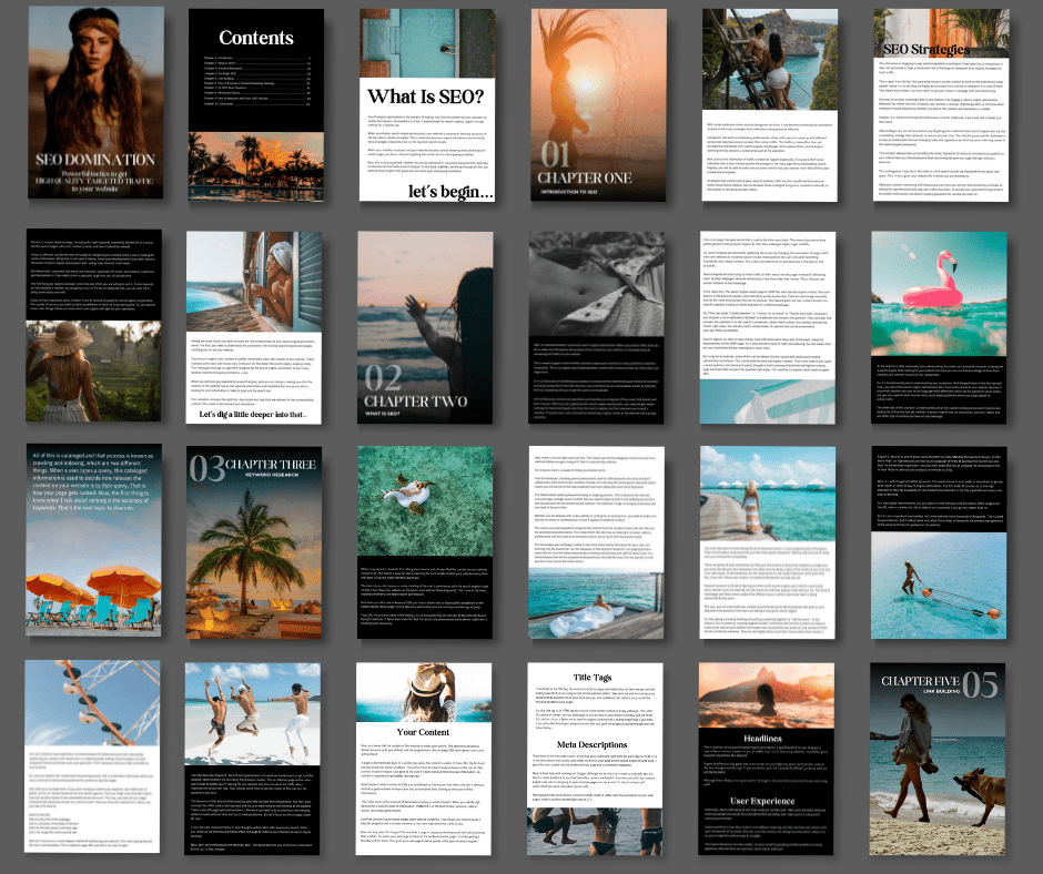 Want to rank higher on Google and get more traffic to your website? The SEO Domination eBook is your ultimate guide to mastering the art of Search Engine Optimization (SEO). Whether you're a solopreneur, a small business owner, or a digital marketer, this eBook will teach you how to boost visibility, drive organic traffic, and turn clicks into paying customers. 🚀