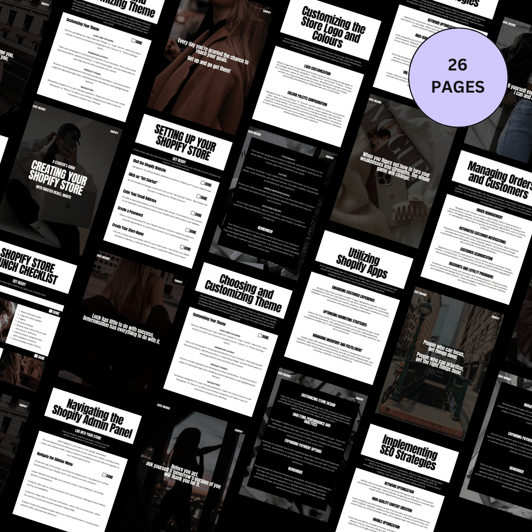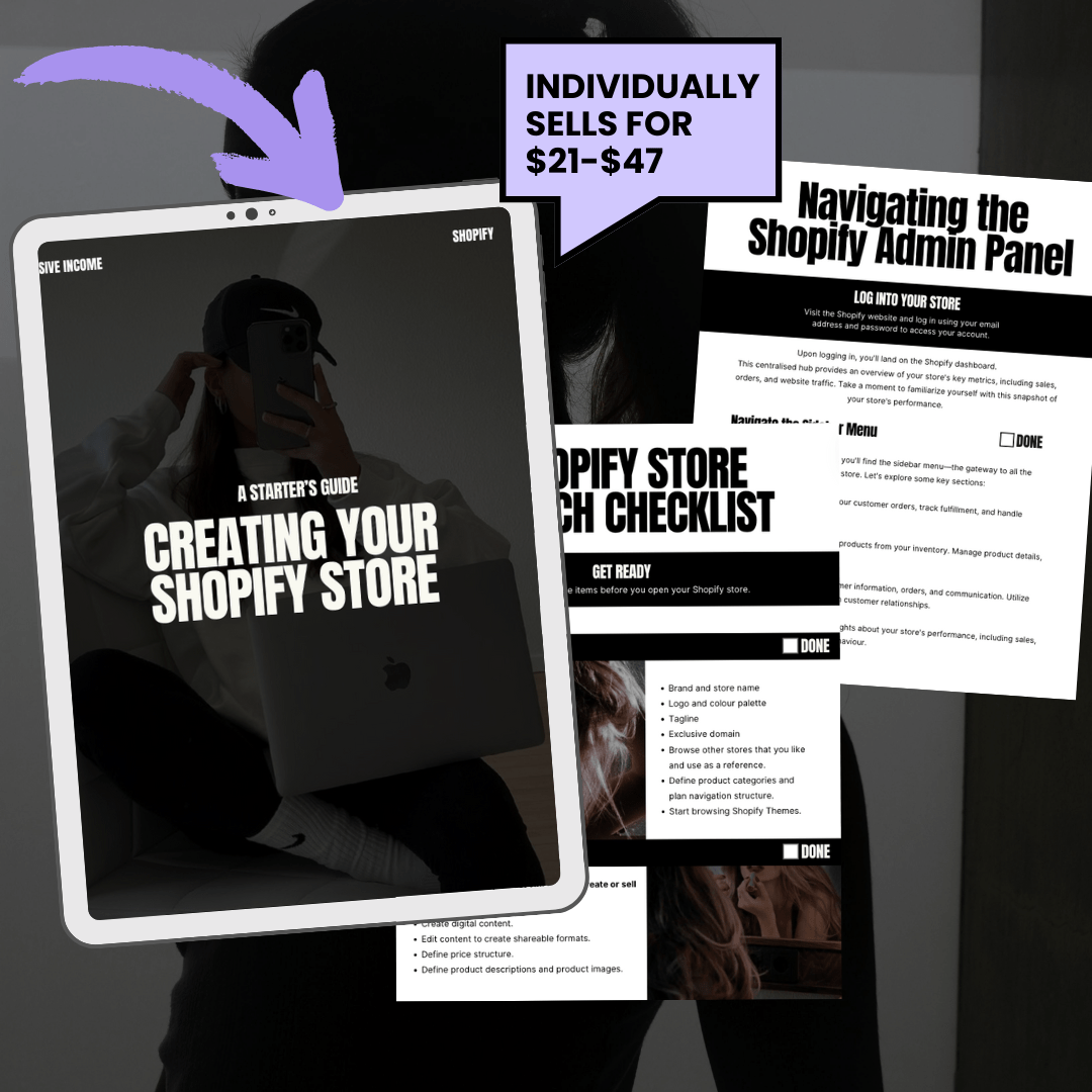 - 📘 Creating Your Shopify Store (38 pages) – Set up your online shop FAST and start selling in record time.