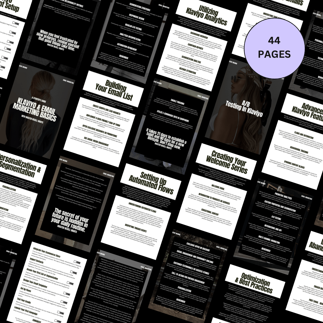 - 📘 Klaviyo Email Marketing Basics (44 pages) – Build relationships and keep customers engaged.